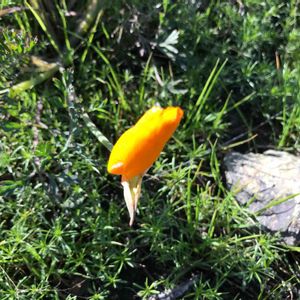 先週も行ったCoyote valleyのトレイルを逆回りに歩きました。すると先週は目に入らなかった花に気がつきました。黄色い小さなスミレ。California golden violet。小さい花はスマホでピンボケしがちで撮影が難しい。学名 Viola pedunculata