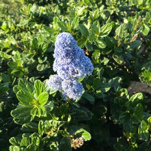 今日は強風なので山歩きはやめて近所を歩くことにしました。 植え込みの青い花は、たぶんCarnel ceanothusです。カリフォルニア原産の低木で、春になるとハイキングでも目にするカリフォルニアライラックの仲間です。 青い花がきれいです。学名 Ceanothus griseus