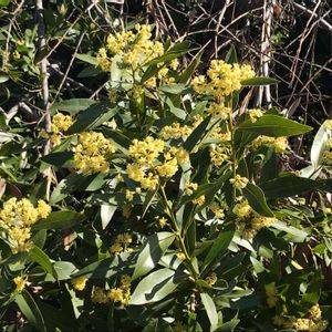 日当たりの良い丘の頂き近くでは、California bay laurel の花が満開でした。
