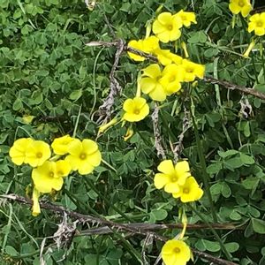 Almaden parkにて。日当たりの良い斜面に明るい黄色の花がまとまって咲いて、とても目立っていました。カリフォルニア原産の野草かと思いきや、帰化したオキザリスと判明。 この公園は昔は鉱山だったので、その頃に持ち込まれたのかも。 学名 Oxalis pes-caprae