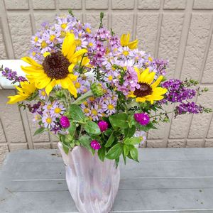 今日の家の周りにあるお花です。 おはようございます❗️ お隣りさんから~ひまわり頂き、生けてみました。😃☺️💮