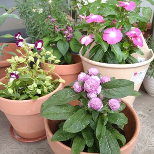 日々草が元気に育って花を10個もつけてくれてます〜🌼 千日紅も家に来て1週間で、ダイソーの鉢植えいっぱいになってます~。トレニアもまだまだ花ざかり💮