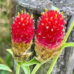 センニチコウ(千日紅) 紅い部分は花ではなく苞で、その間で小さく咲いているのが花のようですね🤔