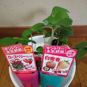 四季なりイチ🍓🍃 花ともさんの四季なりイチゴがずっと気になっていて探していました。 やっといつもいく園芸店で苗🌱を見つけました😆✨ サントリーさんの本気野菜です。 植え付けは、今から