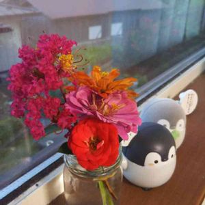 寝室に庭の花を活けたので猫は立ち入り禁止🐱