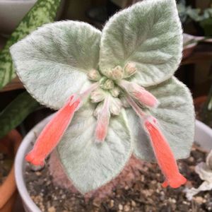 イワタバコ科 シニンギア属 レウコトリカ 断崖の女王 ブラジリアンエーデルワイス 2017.8.7.¥1300 掛川花鳥園 上手く花が咲いて良かった。 このまま同居でいいのか、そろそろ 個室か悩みどころ。。。
