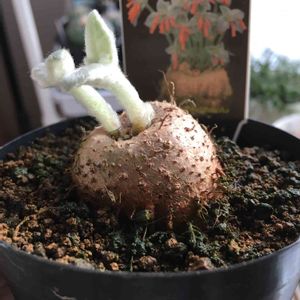 断崖の女王をお迎えしました✨ こんなゴツゴツお芋ボディに、もふもふな葉のギャップがなんとも面白い植物ですね😆💕