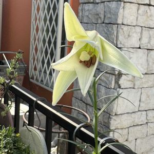 見たことのない花がひとつだけ咲いていた。調べたら「サフラン」と出た。どこから来たの?