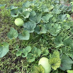 勝手に生えてきた瓜科のなにかをそのままつるの整理とカルシウム剤ぐらいの世話をしていたのですが、実が大きくなっても分からない。 なんですかね。。ユウガオかなぁ。