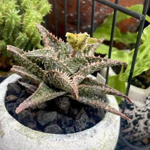 雨上がり 嘘でしょ今日の最高気温26° 涼しい なぅ😊𓂅𓂅︎︎︎ ①アロエ ハイブリッド グランカクタスのガチャの小さな アロエは 元気元気❣️鉢に植え替え。元気に育ってるよ︎👍🏻 ̖́- ②子株もわさわさ。分けてあげた。 大きくなあれ。 ③アロエ ハオルチオイデス ハオルチアっぽイデスね。 世界最小のアロエ。背丈はこんくらいだけど 小さくても子株はバシバシ吹くよ。そのうち菊鉢にドボンかもよ。w ④最近気に入ってる 鉢底の炭。炭ね。◼️