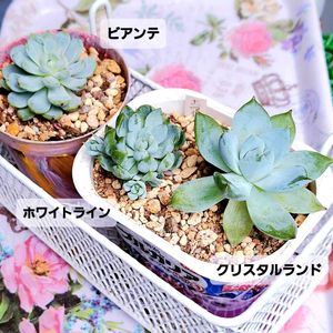 Hi:BRiD(交配)エケベリア3種💚 ビアンテ=ザラゴーサ×ラウイ💅🌌 ホワイトライン=不明👶👶👶 クリスタルランド=クリスタル×メキシカン❄️🇲🇽 省スペース、移動が楽で、地震に強い @D💯引っ掛けカゴ👍😃