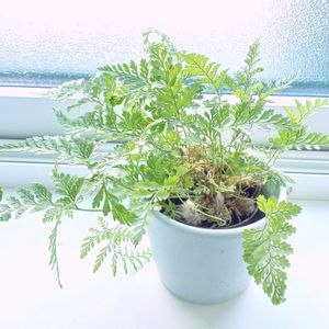 台風の影響で外は暗く大雨と雷です⚡️ 激しい雨が続いている地域の方は気をつけて下さいね またまた登場のダバリアさん🌿 今の時期は生き生きしています🤗🩷 2枚目picはダバリアさんの根茎🤩 なかなかいい感じに増えてます👍 3枚目pic エバーフレッシュさんの新葉が体を反らしているイナバウアー?状態😆🙌💕 よく見るとすごく小さい細かい葉が並んでいます😍🌿