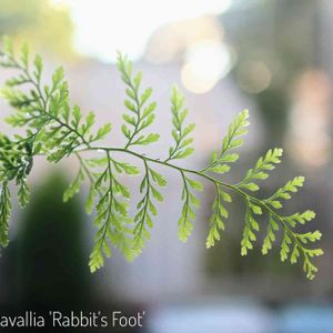 8月9日(水)ムーミンの日🏷️開催します 植物とムーミングッズやイラスト または 植物や風景のみでも ムーミン谷や北欧を感じる写真 (解説文を添えてください_φ(・_・) 皆様の投稿を楽しみにお待ちしております♪ 今日は シダ愛好会🏷️ 毎月4日はシダの日🏷️ カレンダーの日🏷️ で投稿させて頂きます🌿 ダバリア ラビットフット 朝日が1時間ほど当たる軒下で 夜に水やり一回で管理してます 我が家に来てからまだ一年経ちませんが 3倍くらいに育ちました 花言葉があるんですね〜 知らなかった 愛嬌、魅惑的 だそうです🌿