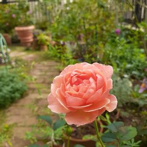 お部屋で育てるばらとして、約半年前にやってきた「かおりかざり」さん。 土に植え替えてお外に出したらすっかり大きくなり、秋になって2つ目のお花を咲かせてくれました😊 お花のサイズも大きくなりました☺️ 横につぼみもついてるので2つ並んで咲いてくれないかなーと楽しみにしています。