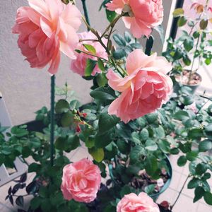 昨日の雨の前に取り込んだ かおりかざり🌹 手前の2つは挿し木っ子です。合わせればひとつの木にたくさん咲いてるみたい?!😆
