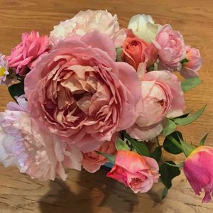 これから明日にかけて、結構な雨が降るそうです☔️ 夕方に慌てて庭のバラを切ってきました。 こうやってみると見事に、みんなピンク💕 昨日はツボミだった小菊が開花してました♡ これは、植えたんじゃなくて勝手に生えてきたの。 この後、みんなちゃんと瓶に挿し直しましたよ
