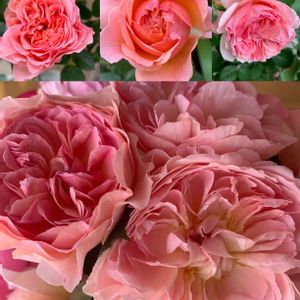 かおりかざりです… サーモンピンク色、アプリコット色?の可愛い薔薇で甘い香りがします✨ 今年、始めて咲いた小さな苗なので、さっさと咲いたのを切って花瓶に挿しました😊 (6月中頃のpic)