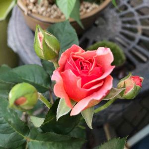 去年の10月に花が無い状態で買った四季咲き薔薇の「かおりかざり」 直ぐに鉢を替えて、1度だけ小さい花が付いたのだけど…小さくて… こんな小さい花なのかな?と思ってたら、今年はこんなに立派な花が咲きました。 薔薇は、苦手で4種類目なんだけど…黒星病とかになって、地植えのピエール以外はまともに育てられた事が無いので、ここの皆さんに教えて貰いながら、今度こそ、大切に育てたいなぁ╰(*´︶`*)╯♡