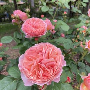鶴見緑地バラ園 4月28日 「かおりかざり」 系統→HT 桃色にオレンジ色のアプリコット綺麗です〜