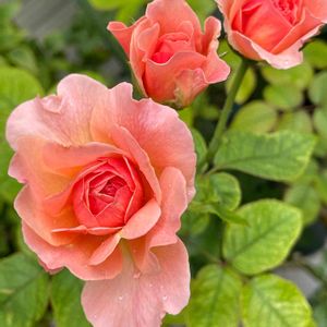 水曜ローズショーのお時間です🌹 国枝ファーム産出の和ばら かおりかざりが、たくさん咲いています♪ オレンジとピンクのあわい 気持ちがホッコリする色合いです🥰