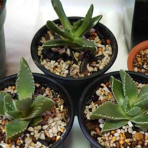 2019年3月播種 久しぶりに植え替えー! ぶつかり合ってたのが気になって。。 もう立派な大人のわにさん🐊 右の子だけ成長遅い😂 根鉢になってた月兎耳も一緒に植え替え🐰