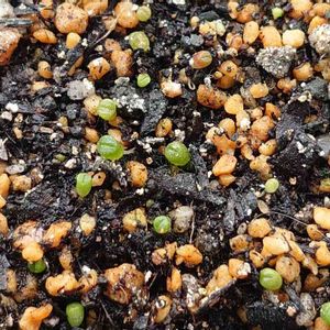 自家採種し、5月6日播種の富貴玉。 150粒位あった中から、1ヶ月20日かかってやっと1つ発芽😍 種が大きいだけあって、芽も大きい😆 ほかも発芽してーーー!!!