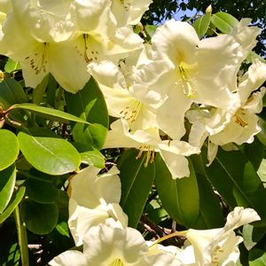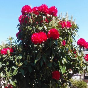 🌸シャクナゲ(石楠花) ツツジ科 ツツジ属 自然状態でも交雑種が多く、種類は多岐にわたります 花色は赤~白、黄色で、葉は輪生しやや下垂します。葉形は広楕円形で肉厚、光沢があります もう、満開に近い状態で咲いていました