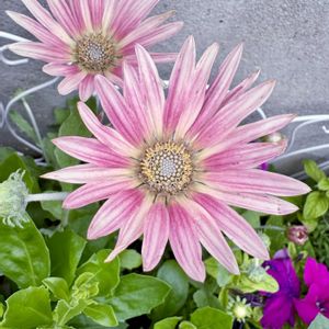 こんばんは~( ˊᵕˋ*) 今日は、結局3時くらいから雨が降り始めました。庭仕事は、結局雨で傷んだ苗の根元の枯葉を取り除いたり、花殻詰みでおわっちゃいました。雨が降る前にと土と欲しい苗を探しにHCのハシゴ。 結果、PWのラブラブラブラブとガザニア ビースト、ラグランジア クリスタルヴェール、湘南ヴェルデの緑のペチュニアをお連れしました。 今日のpicは、ベニジオアークトチス セレスティアルクリーム。白のフェアリーウイングは、育てた事はあったんですが、今年は見つからず、こちらのクリーム色を育てる事に…。タイム ロンギカリウスに埋もれるように咲いています。と言うか、これを植えるためにロンギカリウスを切り抜いて植えたって言うのが正解かな? 爽やかなクリーム色とロンギカリウスのピンクがいい感じ🎶 ☆今日も朝と夕方に1つづつ投稿しています。良かったら、朝の投稿も見ていただけると嬉しいです。今日の朝の投稿は、ベロニカ マダムマルシアです。