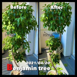 頂いて1年。モリゾー状態となったベンジャミンの剪定に初挑戦。 初めての剪定にしては上手くできた気が。もらった時の姿をひさしぶりに思い出しました笑