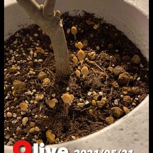 大切なオリーブの根本から大量のキノコが、、、。 抜いても抜いても生えてくる。 胞子を飛ばされても困るので毎日抜いてるけど、毎日生えてくる。。