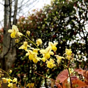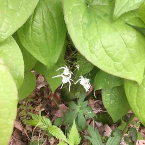イカリソウ咲きました😃 数年前山野草展で頂いて、毎年咲いてくれます😃 優しいクリーム色が好きです💕