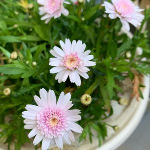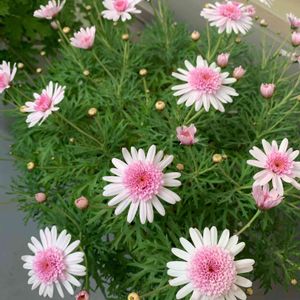 1枚目 マーガレットぽぽたん 咲きました🩷 2枚目 夏越し冬越ししたローダンセマム つぼみがたくさん!いつ咲くのかな?🥰