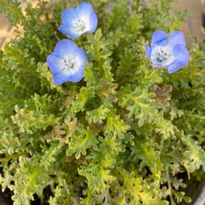 種まきからのネモフィラ ひと株だけど開花💙 早くたくさんの花見たいですね💞
