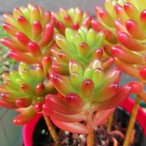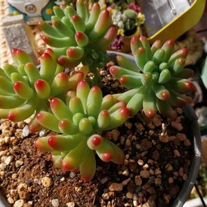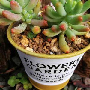週末は多肉事♡ さぁ!この子達をどうしてやろうかしゃん…(笑) 欲しかった碧魚連がやっと手頃な値段でした♡ 海つながりでドルフィンちゃんも一緒に連れてきた🤗🎶 この2つはバケツとジョウロの鉢それぞれに💕 あとは先日、底に穴を開けたデザートカップのダブル鉢に ピンクベリー、オーロラその他を分け分けして「つぶつぶの森」に ♬*゚ Lier苗のアロンスはあみだくじで20%OFFにしてもらいましたよ! いやいやその前に… 棚の移動をしないとこの子達 置けませんて〜😱💦