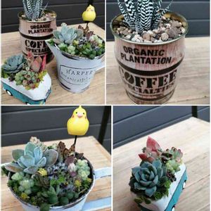 今日は子供達と植え替えしたり 寄せうえしたりしてました😊 左下が小5、右下が小3の子が作りました👧