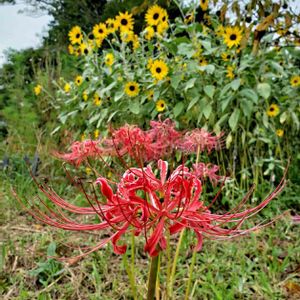 今日は彼岸の入りでしたね。先週はお出かけ先で、夏の花と秋の花のコラボが見られました。