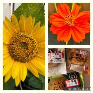向日葵は何本かあったのが先週風でくにゃりと萎えってしまったので、花瓶に生ける前にアップにして写真を撮ってあったものですが、蕾が幾つもあったのに😭 コスモスは色々な色の花が咲きまだ楽しめますね🥰 また後でupします🌸 仕事帰りスーパー寄って食材買う前にスイーツを先にチェック🧐 半額や20%引きがあったから3つ買っちゃいました😋 20%引きは明日までの日付けだったのでラッキー(ღ♡‿♡ღ) 甘い物と皆さんの素敵なpicをみて癒されました💓 今日もお疲れ様でした(◡‿◡ฺ✿) おやすみなさい🌟