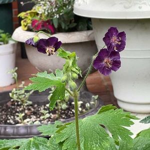 クロバナフウロ 複数枚投稿 5枚 猛暑の夏にも耐えて、今年も咲いた。 家に来て20年程。 同じ鉢で育てていたティアレアは★に