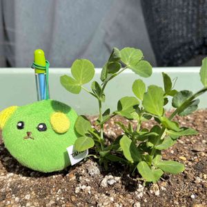 本日のグリーンピース🌱 水加減がよくわからないのでサスティー挿してみました。