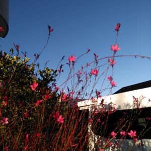 花さんぽ🌺🌻🌹✿ 会社の入り口付近に 紅色のガウラが青空に鮮やかな赤を彩ってとっても素敵‼🌹✿♫ (*˘︶˘*).。.:*♡💖💗💞