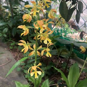 今日のお花エビネ、もう一枚💛🧡💚 これも先程のエビネと同様、去年の4月中旬お隣さんの庭で満開になっていたエビネ蘭です🤗
