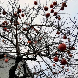 いつもと違う経路での通勤途中。朝日を浴びて「柿」が輝いていました。 パチリ・パチリ