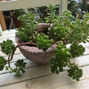 旅行先の奄美の海沿いに生えてたのを、名前もわからず引っこ抜いてきたやつ 調べたらどうやらハママンネングサっぽい なかなかに絶滅が危惧されてるらしい でもわさわさ生えてたけどね… もしかして貴重な生息地だったのかな… 持って帰ってきた以上、大切に育てさせていただく