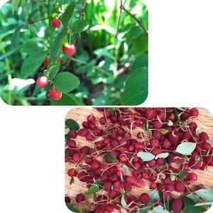 お早うございます☀️☀️ 今日、収穫しました🌲🍒🌲 ウグイスカグラ 50g デリケートな実、種も柄も付いてジャム作りは、残念なことになりました。 生で食べ鳥と分かち合うことも大事だと思いました(*≧︎∀︎≦︎)∩︎〃ウヒャヒャ!!!!!