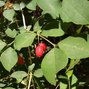 ウグイスカグラの実 スイカズラ科 スイカズラ属 3月12日にpicしたウグイスカグラの実🍒 実のところにチョコンと可愛い葉っぱが付いているでしょう😊 この小さな葉っぱが何とも言えない可愛さだと思います♪♪ 食べると甘くて美味しいです🍒