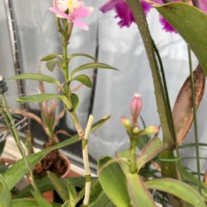 エピデンドラム桜姫千鳥が開花中 高芽が出来てその高芽に花が着いてる。花が終わったら高芽外して水苔で植える?でも水苔苦手なのよね。根腐れがね。