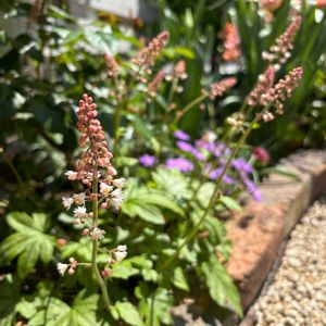 ティアレラのお花が好きなのですが、うちのはどうもひっそりと咲くのが好きなようで。 でも可愛いお花を沢山見たい!!という思いで昨秋に迎えたヒューケレラがまさしく理想の通りに咲きましたヽ(´▽`)/✨ 迎えた時より2回りくらい大きくなって元気に咲いてくれています💕 2枚めが我が家のティアレラ。お迎えしてもう何年か経ちますがずーっとこの感じでひっそり奥ゆかしい感じです^ ^これはこれで可愛いのですけどね💕 3枚めは、先日ついにお迎えした西洋ニワトコブラックレースさん。ハリポタファンなのであえてサンブカスではなく西洋ニワトコと主張します笑 実は数年お迎えしようかでも狭庭だからと悩んでいたのですが、遂に思い切ってしまいました。生産者さんから直接買ったのですが、育てるコツを尋ねたら、夏には葉が傷むから夏は半日陰〜日陰の涼しい場所へ移動できるよう鉢で育てるか、もう少し大きくなってからそういう場所に地植えする事と言われました。狭庭で樹木を育てるにはやっぱりシーズン毎にメインを入れ替えできる樹木鉢置き場があった方が良いなと思うのですが、これ!!と思うアイディアが浮かばないので、浮かぶまではとりあえず元気に育てる事に集中したいと思います^ ^枯れませんように…!!