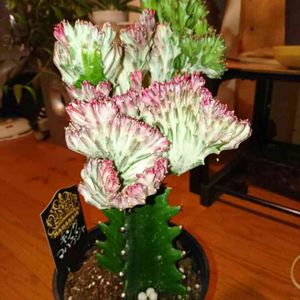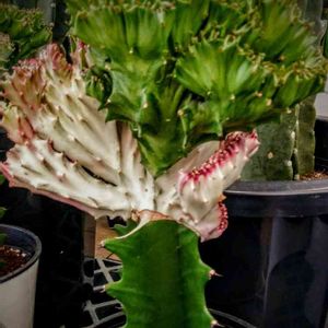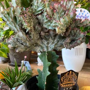 🌵キングマハラジャ🌵 !(๑•∀•๑)!すごっ! 人気があるらしいです😅 私はちょっと遠慮しま~す。 調べてみました。 「個性的でユニークな形が大人気!「綴化(せっか)」と言う、突然変異的な奇形でこんな形をしています。自ら育つ力が弱いので、同じユーフォルビアの「キリン角」という種類に接ぎ木してあり、タイで栽培されたものが輸入されています。」 だそうです。 接木だったのですね(๑•̀⌄ー́๑)b