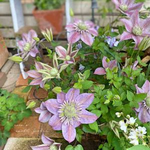 クレマチスH.Fヤング一気に開きだしました☺️ 右上はミリオンベルバターポップコーン 冬越しして咲いてくれました😆 そしてクレマチス水面の妖精も開きだしてます🎵