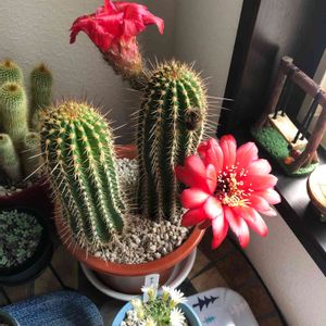 小さなサボテン達🌵 小さくても咲いてくれるのね((o(*>ω<*)o)) 大切に育て中‼️ 暑いけど😅💦朝晩の見回り欠かせませんね 皆様 水分補給🥤忘れずに‼️